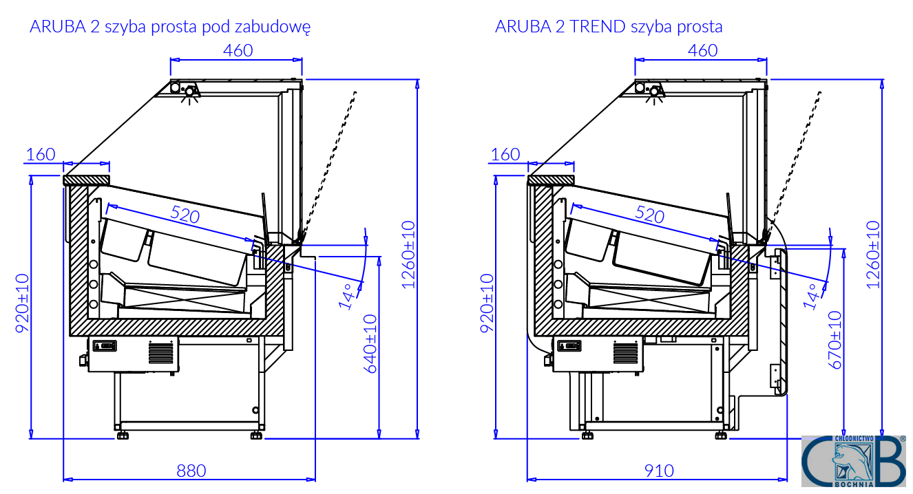 | przestrzeń ekspozycyjna z blachy nierdzewnej przygotowana pod pojemniki 360×165 mm (ARUBA 2/1.0 = 7 smaków, ARUBA 2/1.25 = 10 smaków) | |||||||