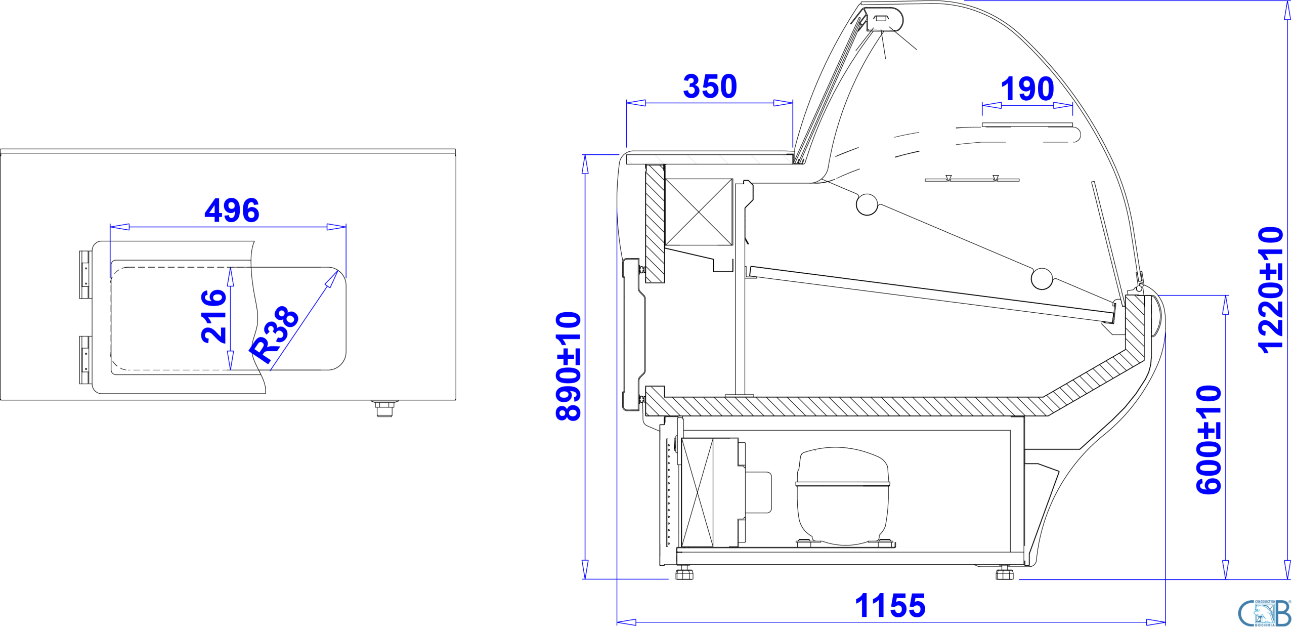 | lampa ze świetlówką LED (barwa do wyboru– biała, cukiernicza lub mięsna „deep pink”) | |