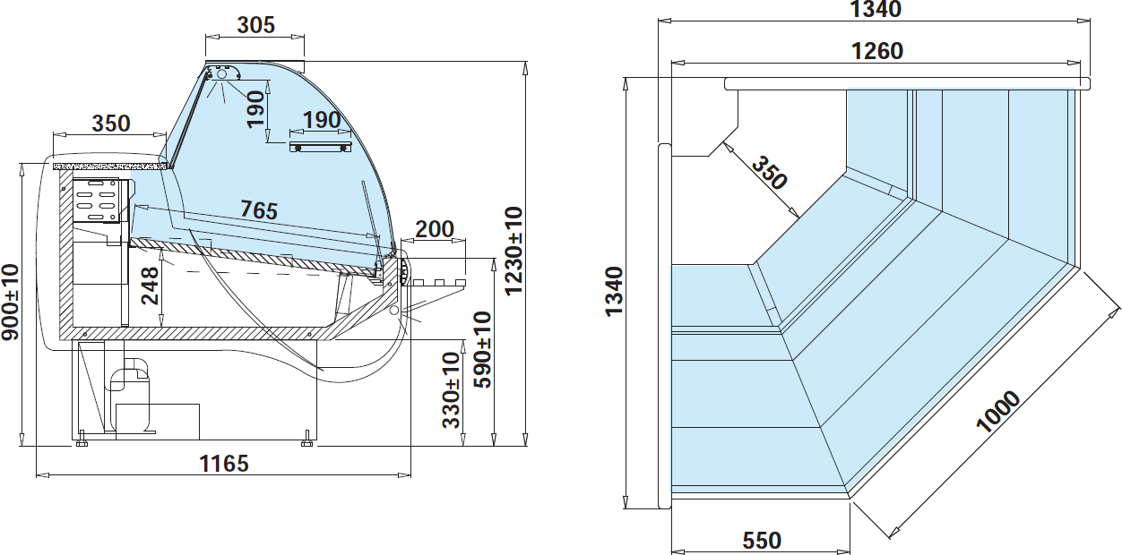 | lampa ze świetlówką LED (barwa do wyboru– biała, cukiernicza lub mięsna „deep pink”) |