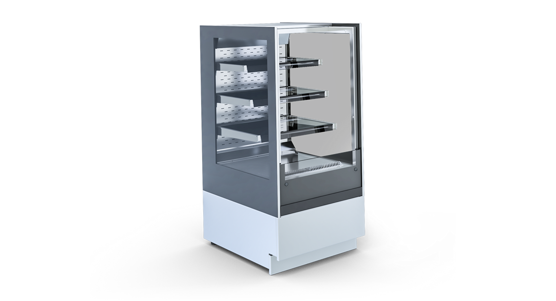 Witryna cukiernicza CUBE 2 OPEN to urządzenie, w którym zastosowano duże przeszklenia. Dzięki temu prezentowane w witrynie produkty są dobrze zaprezentowane i należycie wyeksponowane. Zastosowane w witrynie oświetlenie LED, dostępne także w barwie cukierniczej, doskonale podkreśli wizualne walory prezentowanych produktów.