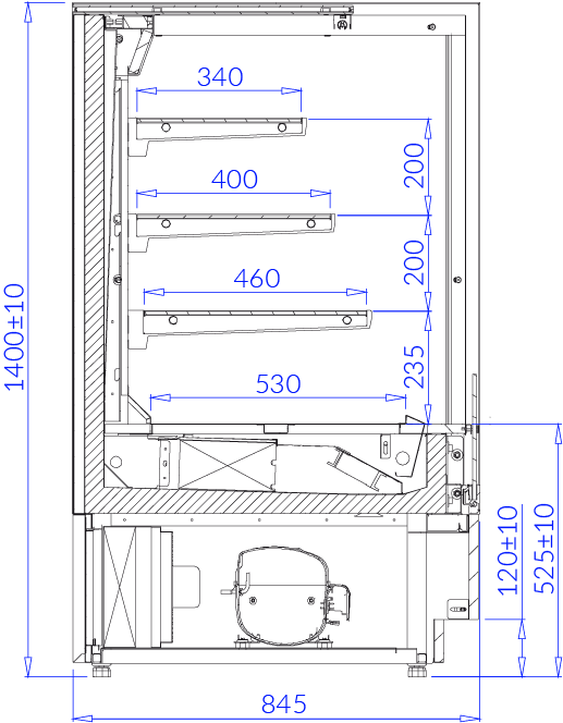 | stelaż wewnętrzny z blachy nierdzewnej (nie dotyczy aluminiowego profilu poprzecznego półki) | |