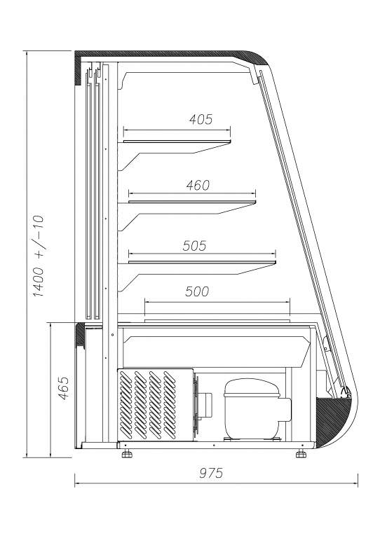 ** – Zapotrzebowanie mocy chłodniczej: 1000W/mb parownika przy temp. odparowania -10°C (aut. odparowanie skroplin na życzenie)