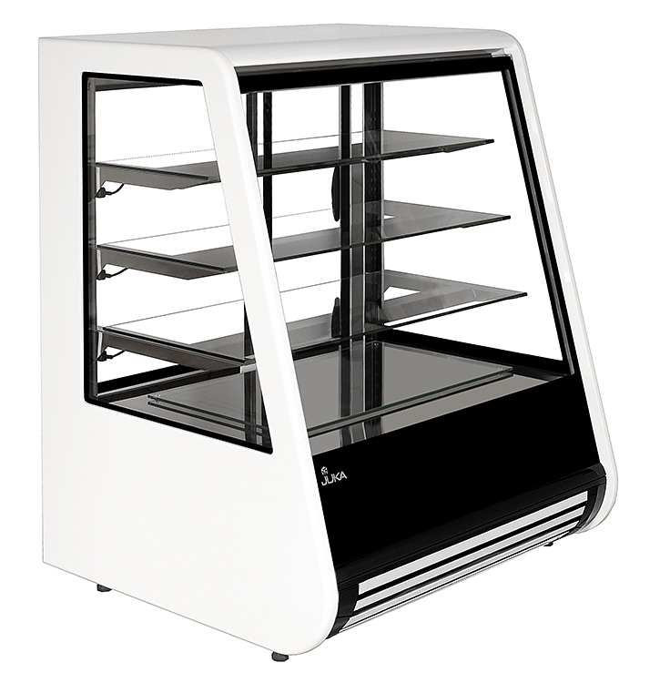 - 3 rzędy podświetlonych półek: szklanych