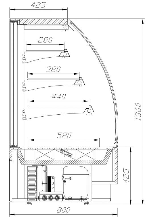 ** – Zapotrzebowanie mocy chłodniczej: 1100W/mb parownika przy temp. odparowania -10°C (aut. odparowanie skroplin na życzenie)
