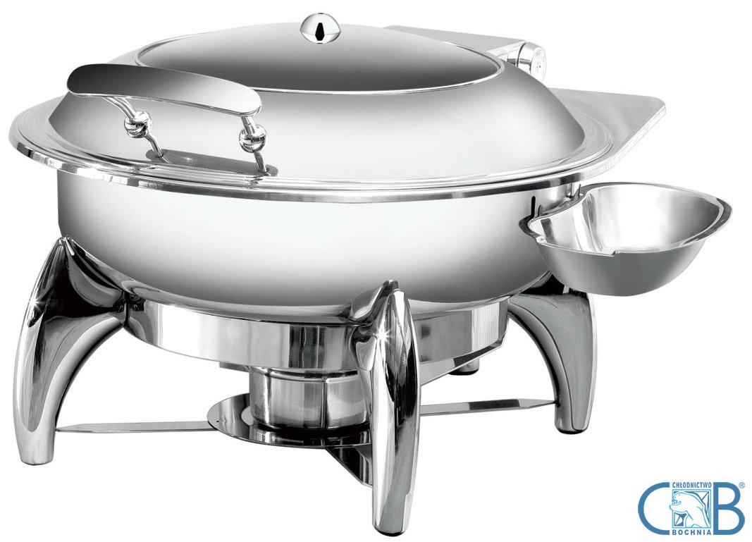 Okrągły podgrzewacz gastronomiczny na pastę przeznaczony do utrzymywania właściwej temperatury gotowych dań i potraw. Urządzenie wykonane jest ze stali nierdzewnej oraz posiada przeszkloną pokrywę zamontowaną na specjalnym zawiasie zapewniającym swobodne i powolne opadanie. Podgrzewacz stanowi niezbędne wyposażenie każdego bufetu i cateringu.