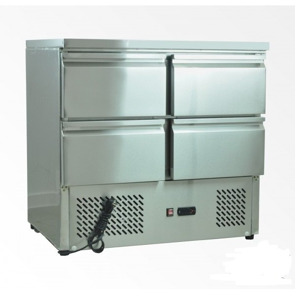 Stół chłodniczy z 4 szufladami ESL3820 z agregatem na dole wykonany z wysokogatunkowej stali nierdzewnej.Urządzenie doskonale nadaje się do różnego rodzaju punktów gastronomicznych tj. restauracje, pizzerie, bary, fast-food’y, puby itp.