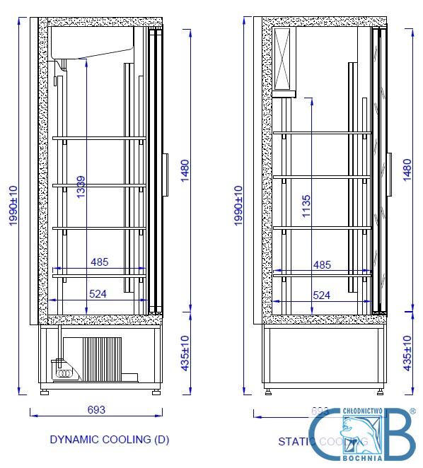 • wnętrze szafy wykonane z blachy aluminiowej