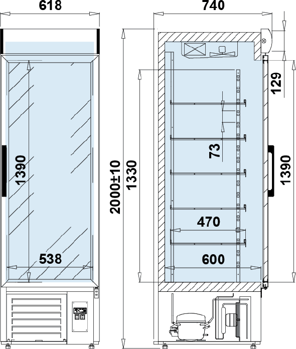 | agregat chłodniczy wewnętrzny umieszczony na dole |