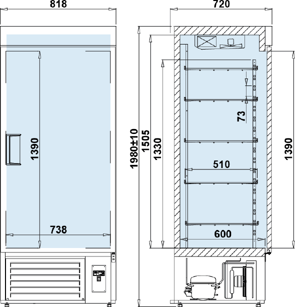 | agregat chłodniczy wewnętrzny umieszczony na dole |