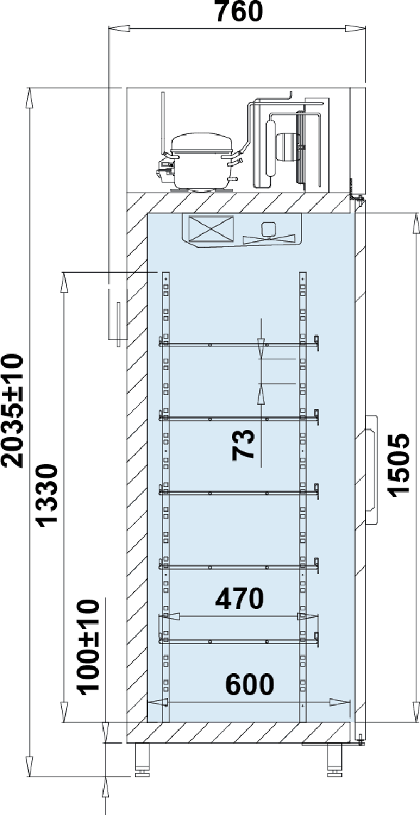 | agregat chłodniczy wewnętrzny umieszczony na górze |