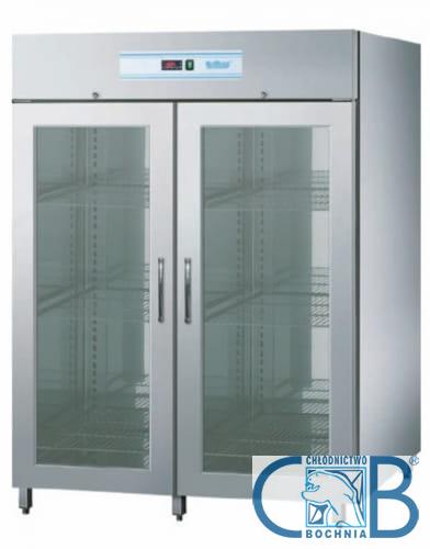 Szafa mroźnicza GN 2/1 dwudrzwiowa z wymuszonym obiegiem powietrza, z automat. odszranianiem i odparowaniem kondensatu gorącym gazem, z regulacją z wyświetlaczem cyfrowym. Centralne mrożenie z odpływem kondensatu. Parownik umieszczony poza komorą chłodniczą. Agregat w formie monobloku umieszczony na górze urządzenia.