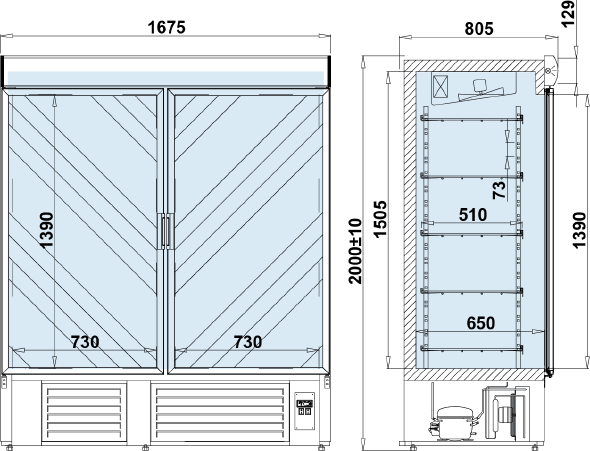 | drzwi rozwierne z podgrzewaną szybą zespoloną-możliwość wyboru kierunku otwierania |