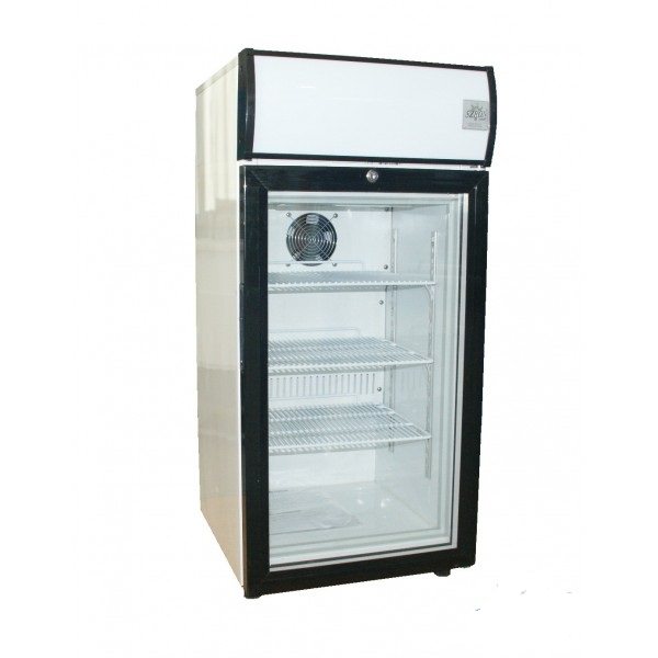 Przeszklona witryna chłodnicza z drzwiami otwieranymi LG-80 o poj. użytkowej 80 litrów z obudową metalową malowaną proszkowo na kolor biały. Drzwi przeszklone posiadają ramę oraz uchwyt wykonane z wytrzymałego tworzywa PVC w kolorze czarnym. Urządzenie wyposażone jest w chłodzenie grawitacyjne.