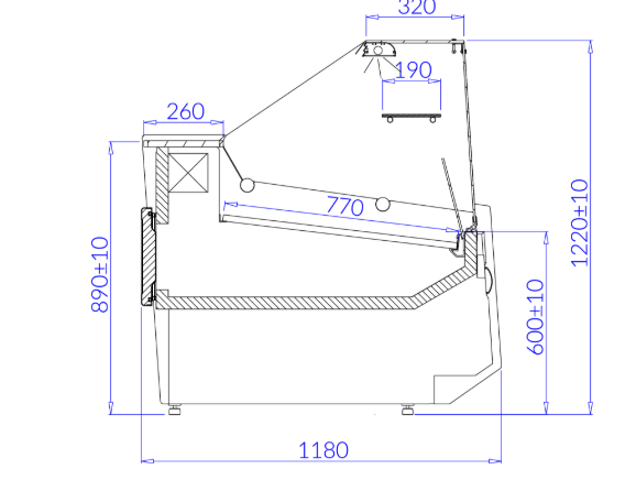| lampa ze świetlówką LED (barwa do wyboru: biała, cukiernicza lub mięsna „deep pink”) |