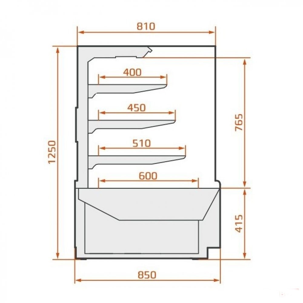 Przedstawiona lada cukiernicza nie posiada w podanej cenie boków szklanych,  paneli frontowych oraz dolnych – do wyboru metalowe lub z płyty MDF.