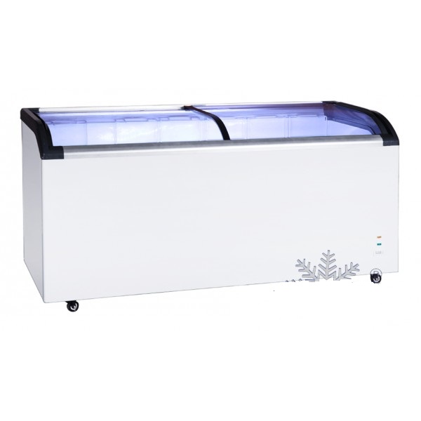 Zamrażarka o pojemności 545 litrów użytkowych z lakierowaną obudową w kolorze białym. Urządzenie posiada wnętrze wykonane z blachy aluminiowej, mechaniczny termostat oraz grubą i ekologiczną izolację. Zamrażarka posiada dwie wypukłe szyby przesuwne. Urządzenie można łatwo przestawiać dzięki zamontowanym kółkom.